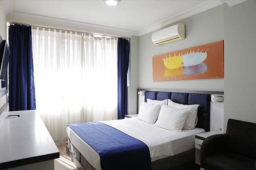 Alican Hotel’in özel tasarlanmış çift kişilik odaları, ferah ve şık dekore edilmiş standart odalarımız beklentilerinizi ve istediğiniz konforu sağlamaktadır.